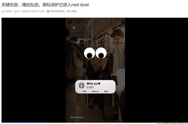 三星此次给出的方案是直接在屏幕上做文章,确保只有正对屏幕的用户可以清晰看到内容,旁人则只能看到黑屏。并且三星方面宣称,该技术不再是简单的全局开关设置,用户既可以手动调整防窥水平,也能设置仅在特定App中自动激活。
