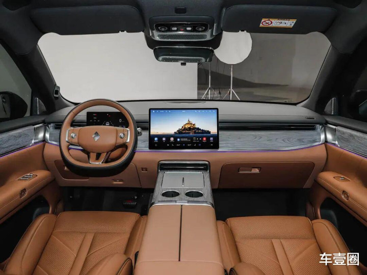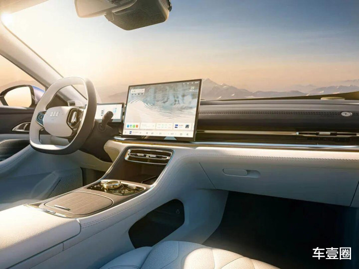 内饰方面,环抱式遐想看着极上端倪,再加上15.6英寸AMOLED悬浮式中控屏、车载雪柜等设置,科技感也到位了。