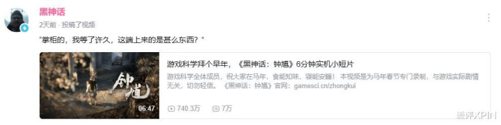 就在前两天,游戏科学给玩家们贺年的同期,趁机发布了他们正在制作的新作《黑神话:钟馗》的贺岁短片:
