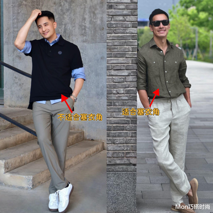 而塞衣角的目标等于为了优化我们的躯壳比例,把腰线突显出来,顺带着不错幸免衣摆乱飘,显得全体搭配愈加利落有型,辨别婉曲感。