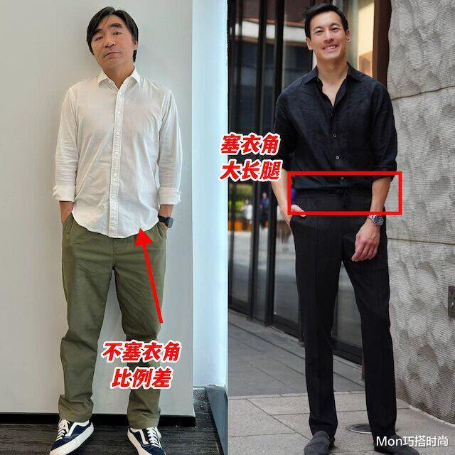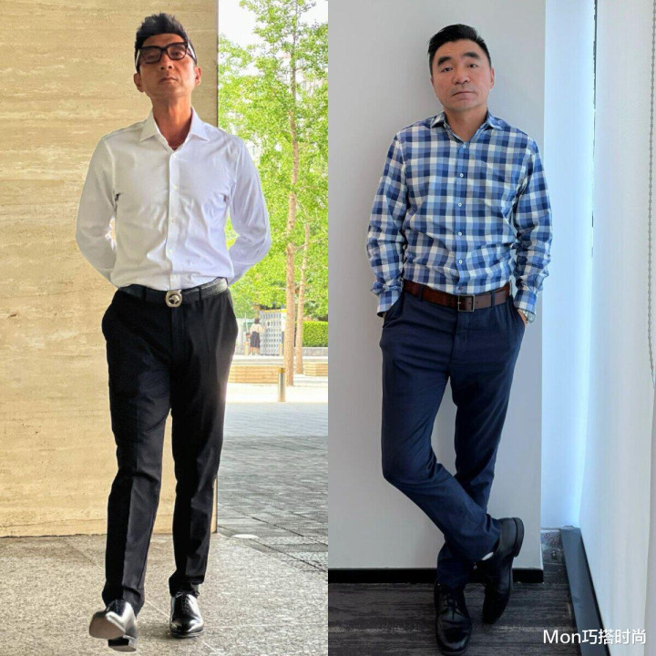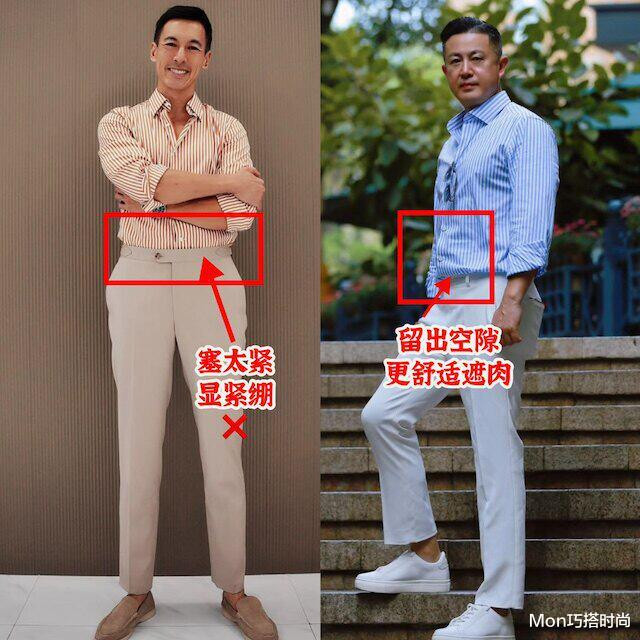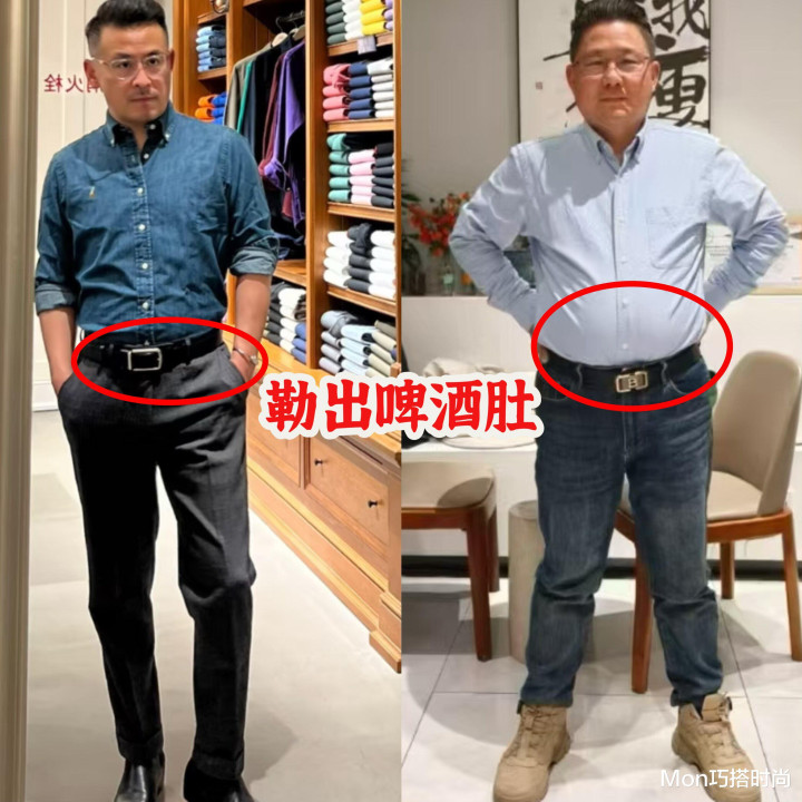 在持重场合中,男性一又友们简直皆会系皮带,毕竟皮带不仅是为了优化我们的比例,固定裤子,亦然一种配饰,不错遮挡我们的穿搭,但系皮带这个操作亦然有风险的,像许多男性躯壳发福了,有啤酒肚的情况下还盲目系皮带,就会起到减分的成果,尤其是这种衬衫塞裤腰再系皮带,挺着个大肚子,实在是太浓重了。