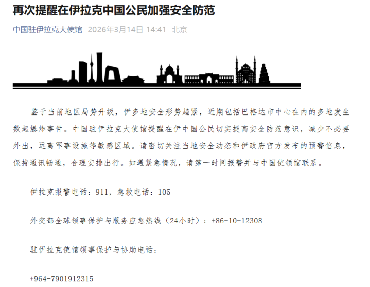 nba下注官网 中国驻伊拉克大使馆再次指示在伊中国公民加强安全防患, 鉴别军事步伐等明锐区域发布日期:2026-03-14 15:33 点击次数:80