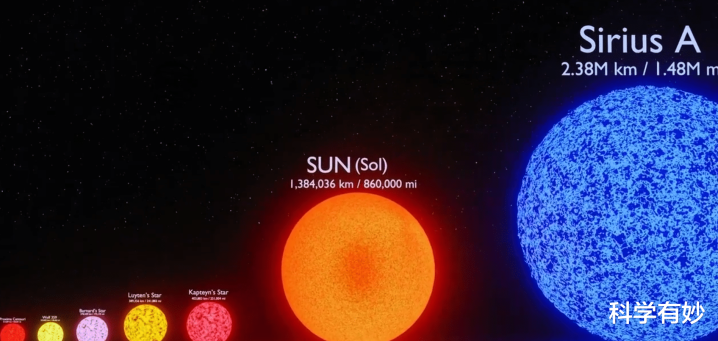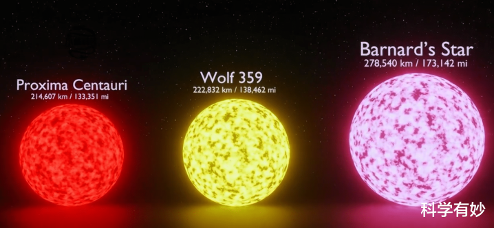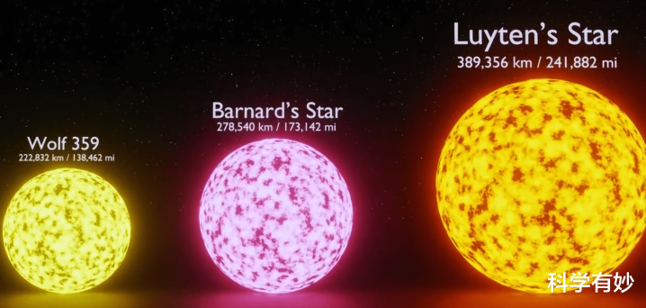 再往上,是太阳系第四近的恒星巴纳德星,一样是 M 型红矮星,直径约 27.85 万公里,距离地球 5.96 光年;还有直径 38.93 万公里的卢坦星、直径 40.38 万公里的卡普坦星,这些红矮星固然个头远小于太阳,却是星河系里最常见的恒星景象。