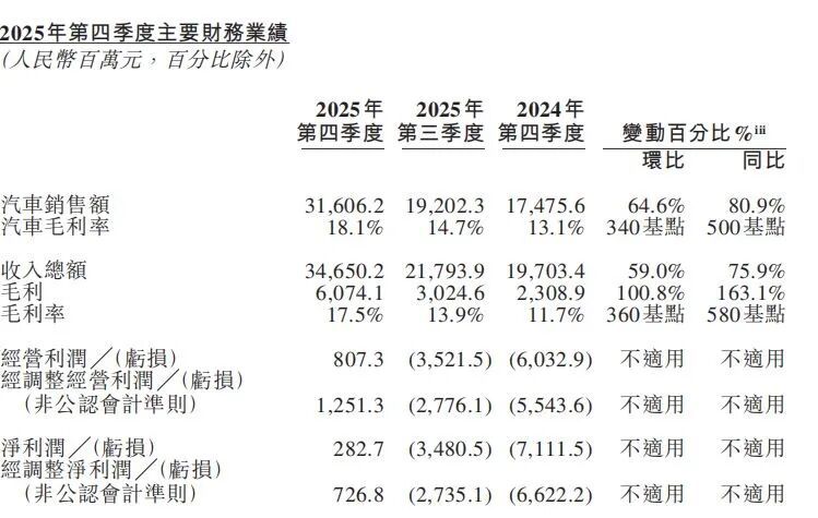 数据自满,蔚来2025年全年共托福新车326028辆,同比增长46.9%,创历史新高;全年营收874.9亿元,同比增长33.1%,创历史新高;全年毛利总和119.2亿元,同比增长83.5%,创历史新高。