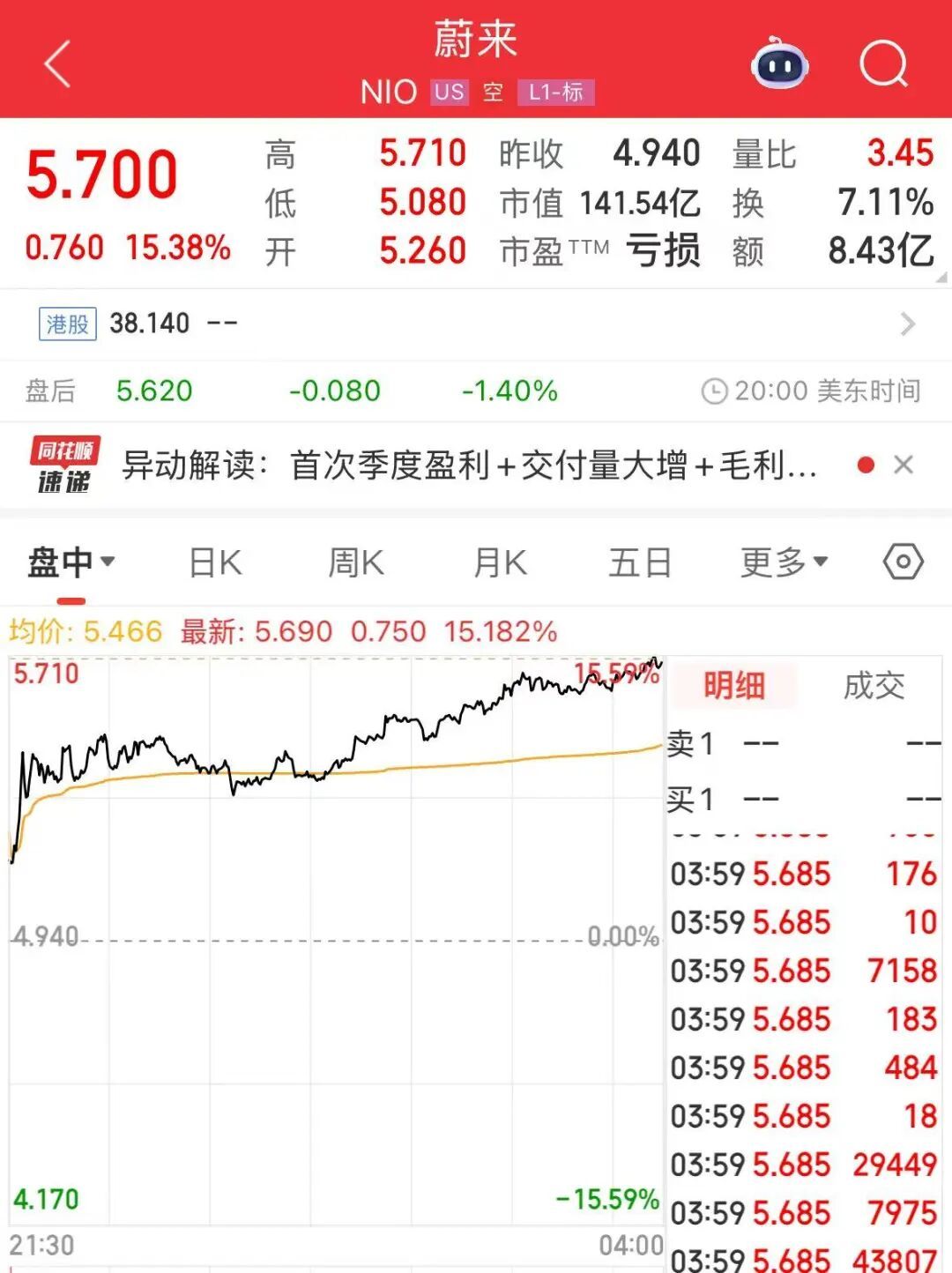 阛阓方面,蔚来好意思股收盘股价大涨超15%,市值增长约18.87亿好意思元(约合东谈主民币126.40亿元)。