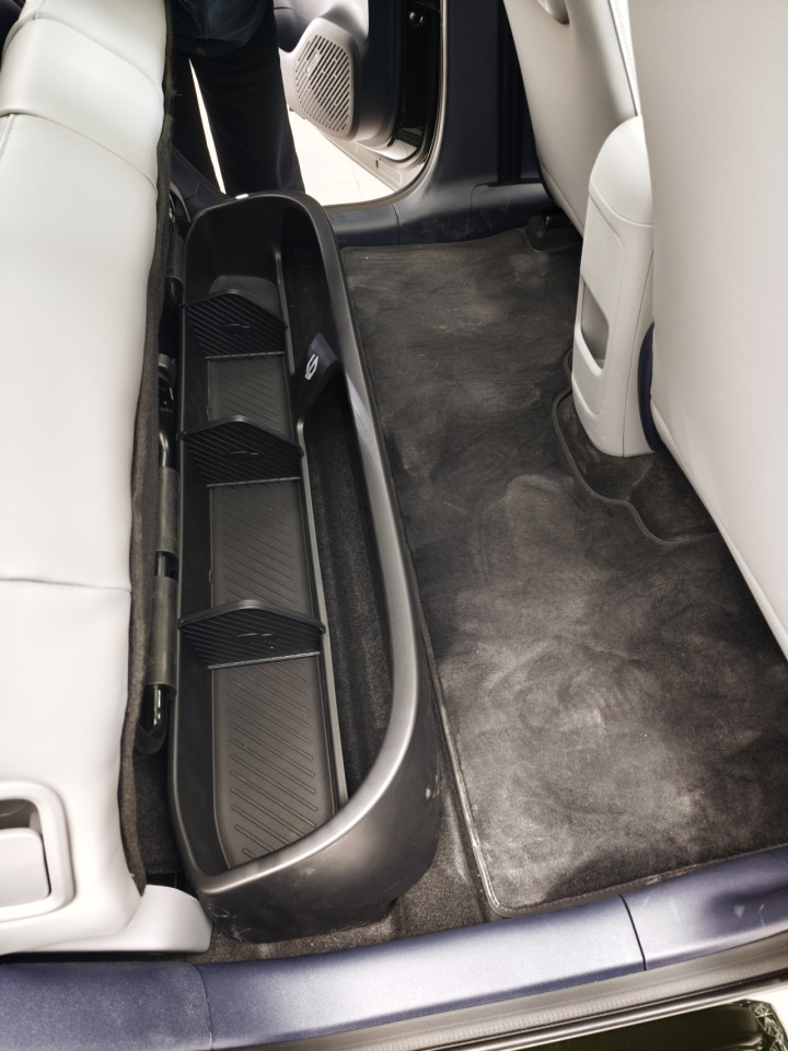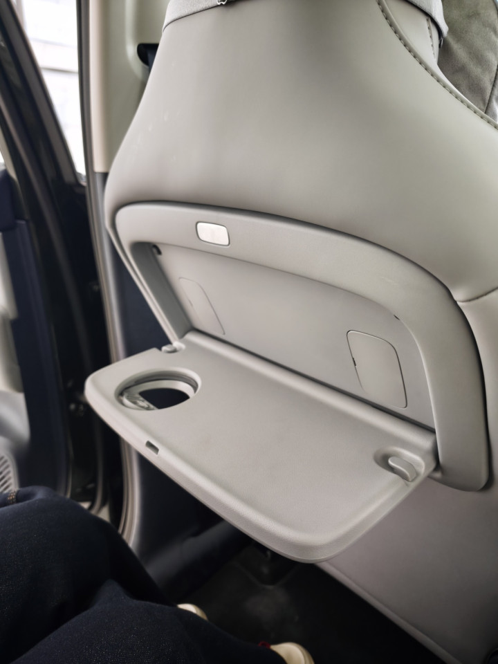 后排则是配备了一样于魔术座椅的坐垫翻折功能,以及天然面积不大但吃零食、放水杯时还算实用的小桌板,这些皆会很招引东说念主——坐垫翻折之后放大件物品,好像是佩戴大型犬坐车;小桌板放个水杯之类,皆是真切了用户的用车场景而联想,这点重点赞。