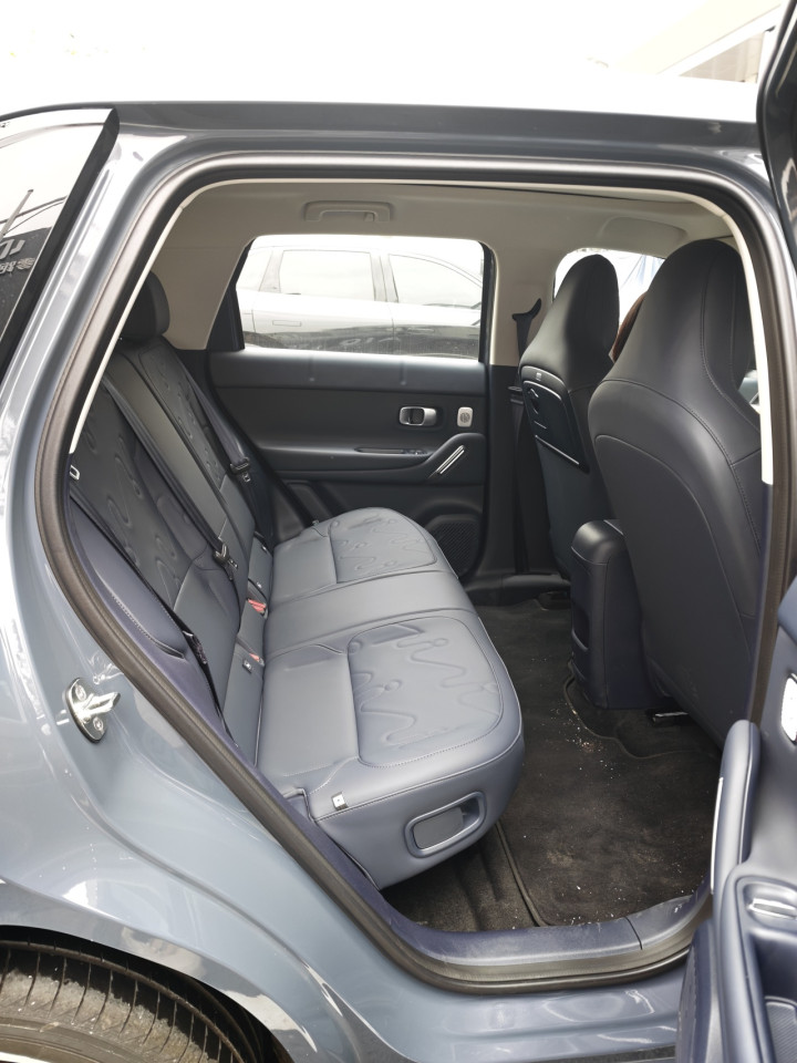 休养到合适的前排驾驶坐姿后,我坐进后排,此时腿部空间为2拳4指,头部空间为1拳,相称广漠。坐姿也比较正常,坐垫填充物软硬适中,面料比较滑,是一种环保的亲肤材质,取得了环保认证,因此宣传内舱是零甲醛开释,母婴友好;靠背角度略直,但当作一台代步车可以经受,坐着不难熬,我个东说念主认为比B10的后排更自得,还多了后排阅读灯,十足好评。座垫长度对我的腿长来说刚刚好,但要是身高杰出175cm的话,可能会认为略有点短。