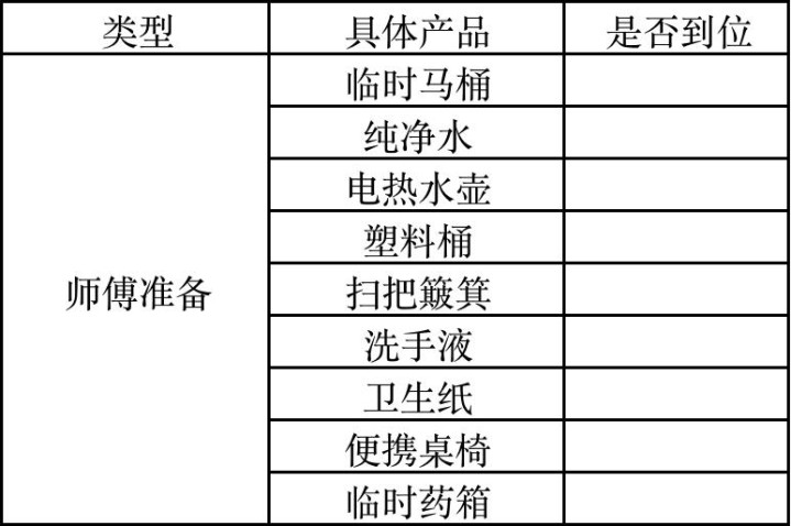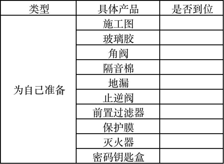 聊完需求表格,这里我也趁机聊聊我们在开工前最佳需要我方准备的一些物品,这里我把需要准备的物品主要分为两类,差异是为师父准备的物品和我们我方施工时所需的物品。