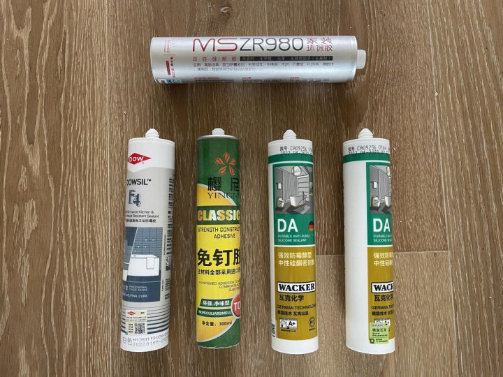 玻璃胶用量大,用途广,无论是封边一经粘合都少不了它,各个空间用量都不少。如果凯旋用师父自带的可能发霉变黄不说,而且还容易混浊超标。因此玻璃胶最佳我方购买,玻璃胶种类多,不同场景不同型号。后期我会和内行聊聊玻璃胶的选购要点,这里就不再伸开。