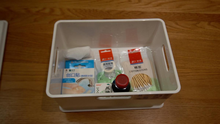 这个是最容易忽略的,里边放点创合贴、纱布、医用胶布和碘伏、棉球以备以防意外。夏天不错再放点花露珠和藿香浩气水。